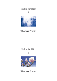 "Haiku für Dich" nennt Thomas Peretti seine Werke. Er spricht also Leserinnen und Leser einerseits mit dem vertraulichen Du, anderseits aber mit der grossgeschriebenen Höflichkeitsform an. Aus den linkseitig geklebten Postkarten-Büchern (je 33 "Ansichten") können die einzelnen Haiku herausgetrennt und verschickt werden. Jedes Gedicht ist eine persönliche Postkarte.